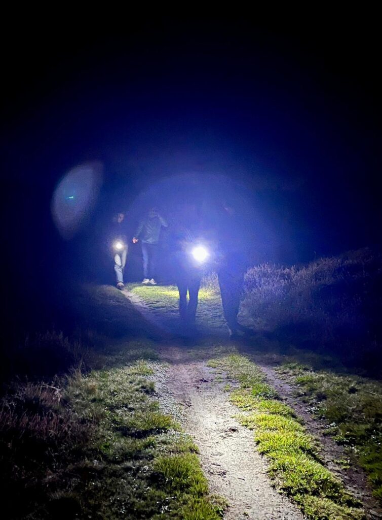 Die avond gaan we in het donker naar buiten en als we op de heide staan denk ik terug aan hoe ik hier in januari stond, vol spanning en al direct geraakt en gegroeid door die eerste avond. Wat staat deze groep nog veel te wachten. Ik zou het graag willen verklappen, aan hen en aan jullie, maar het werkt pas echt als je het ervaart en doet, in plaats van er over hoort of leest. En het is vast ook elke keer weer anders, net als de donkere horizon om me heen die soms mistig is, maar vanavond helder. Ieder zijn eigen traject, binnen de veilige bedding die Geert en ik vandaag samen met deze groep mensen hebben gevormd.